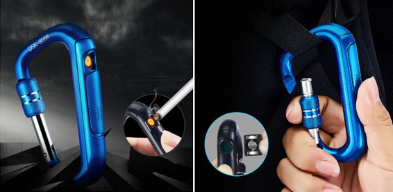 Удобная USB зажигалка-карабин. Материал: Металл