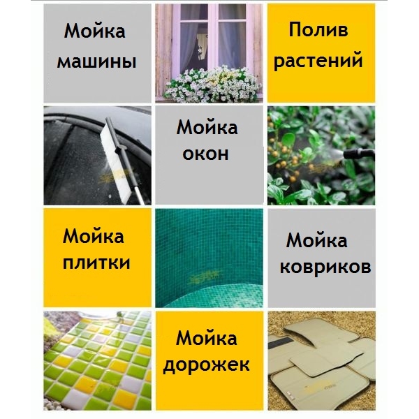 • мойку автомобилей, мотоциклов, велосипедов, катеров;